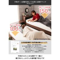 高い2段ベッドに比べ、横に子ベッドが展開するため、子供の様子を見ながら安心して眠れます。子ベッドはキャスター式で離して使うことが可能なため、子供が一人部屋を持つようになったら親の収納スペースとして、あるいは子供部屋にそのまま移動して使うこともできます。親ベッド子ベッドともにすのこ床面のため、通気性も良好です。