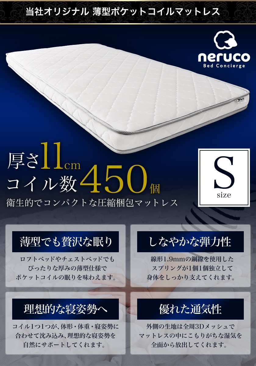 ※本ページは当社オリジナルの薄型ポケットコイルマットレスとのセット販売ページです。