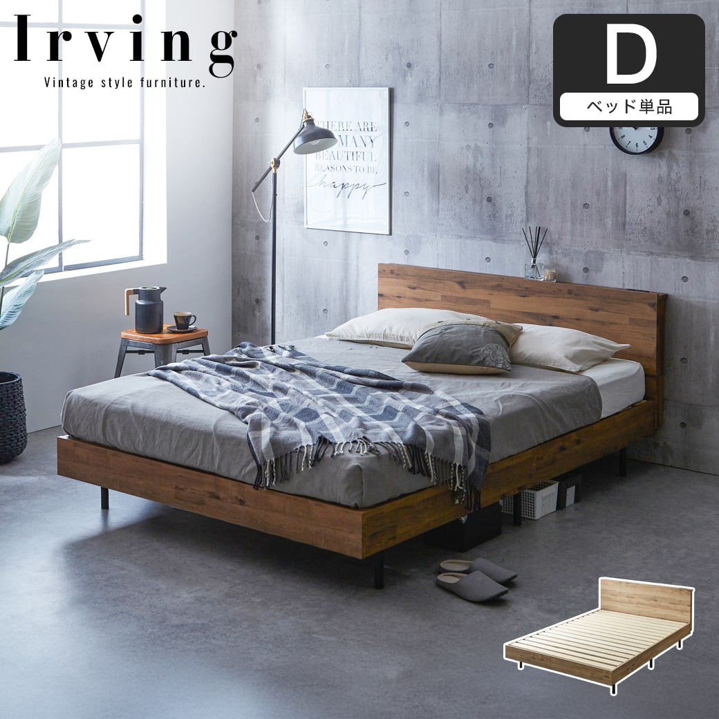 当社オリジナルの木製ベッド「アーヴィング」。味わい深い表情の木目と武骨なアイアン脚が合わさった、おしゃれなヴィンテージ調のベッドです。