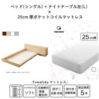 | プラットフォームベッド シングル&ナイトテーブルL(左)&25cm厚 ふわふかポケットコイルマットレス付 棚・コンセント付き 高さを抑えたロースタイルベッド。お部屋にゆとりと開放感のある空間を演出。便利ながらも圧迫感を与えない、スリムな奥行きの宮棚です。棚にはホコリが入りにくいスライド式コンセントが2口。スマホ等の充電に使用できます。ベッドフレームのヘッドボードの左側に設置できるナイトテーブルにもコンセント付き。スッキリとした直線的なデザイン。きれいな木目調のベッドフレーム ■サイズ(約):ベッドフレーム:幅113.4×奥行208.6×高41.6cm 床面サイズ:97×196cm ナイトテーブル:幅42×奥行30×高42.8cm マット:幅97×長さ195×厚25cm (※設置時の幅はフレーム幅とナイトテーブルの幅の合計となりますのでご注意ください) ■材質:ベッドフレーム:MDF( メラミン化粧繊維板 )、LVL ナイトテーブル:MDF( メラミン化粧繊維板 ) マット:表面生地:ポリエステル100% 、ニット織 側面生地:3Dメッシュ 中材:側面生地:立体ニット生地/ポリエステル100% 中材:抗菌防臭防ダニわた、高弾性わた、ウレタンフォーム、ピュアフェルト ポケットコイル高: 20cm 鋼線種:SWRH72B-B種 コイル線径:1.9mm、コイル巻数:9.5巻 ■耐荷重(約):150kg ■組立:お客様組立品(大人2人40分) ■生産国:中国 ■梱包:ベッド:3個口 3-1)105.5×34.5×17(18.3kg) 3-2)116.5×34×7(12.1kg) 3-3)104×43.5×8(9kg)(cm) マットレス:1個口※衛生・コンパクト、圧縮梱包でお届けいたします。 ■備考: コンセントAC100V ※組立にプラスドライバーが必要です。 【BR】【NA】【WH】【GY】 |