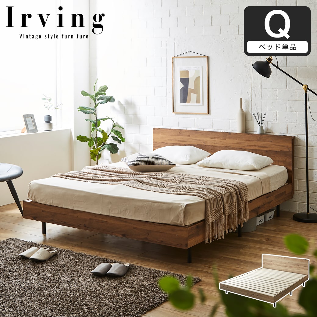 当社オリジナルの木製ベッド「アーヴィング」。味わい深い表情の木目と武骨なアイアン脚が合わさった、おしゃれなヴィンテージ調のベッドです。