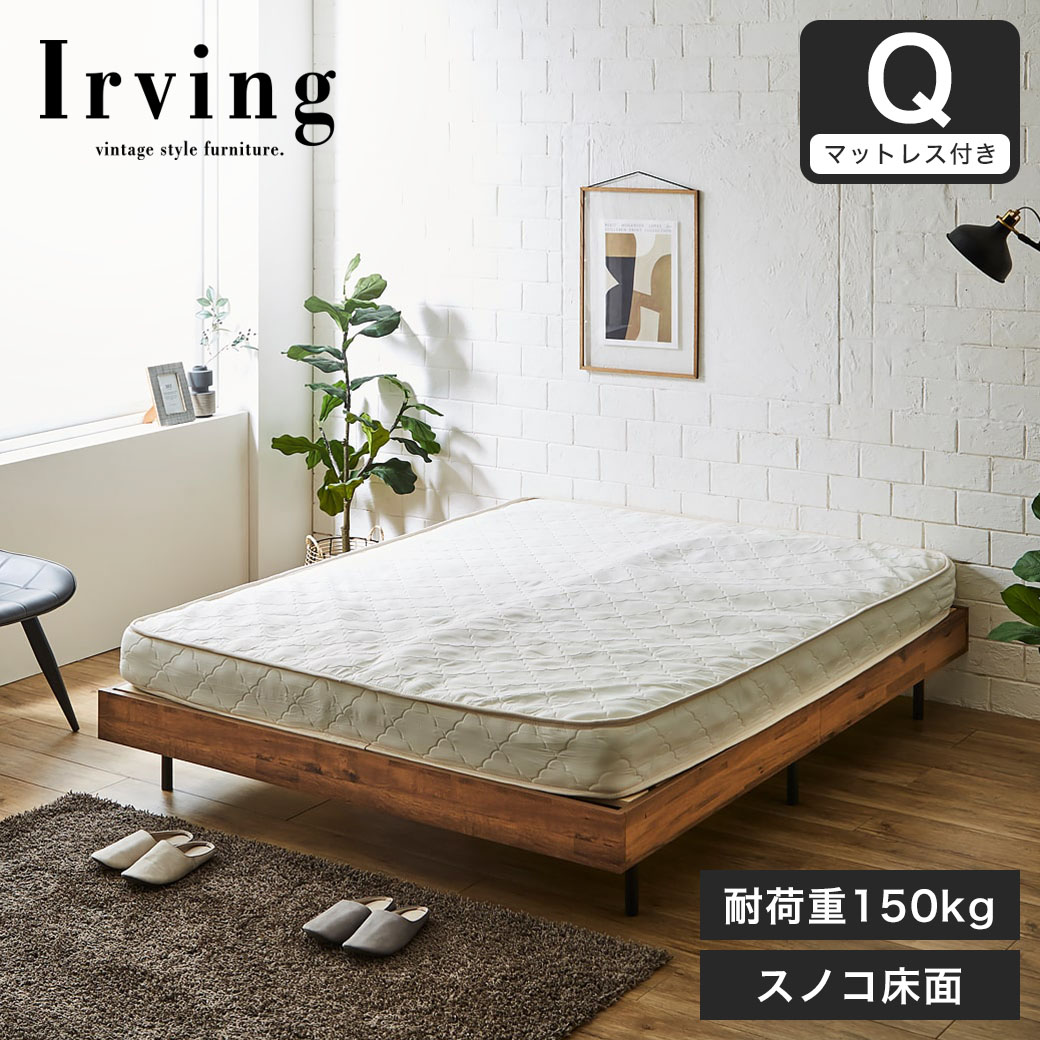 当社オリジナルの木製ベッド「アーヴィング」。味わい深い表情の木目と武骨なアイアン脚が合わさった、ヴィンテージ調のベッドです。