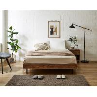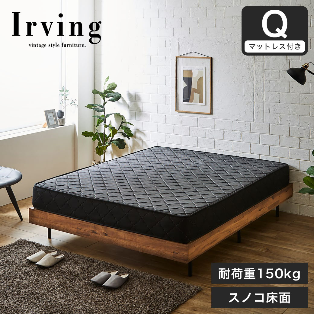 当社オリジナルの木製ベッド「アーヴィング」。味わい深い表情の木目と武骨なアイアン脚が合わさった、ヴィンテージ調のベッドです。