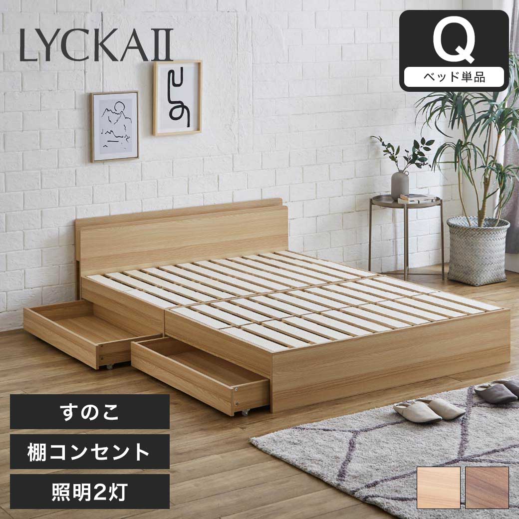 4/20 8:59まで最大10%OFF! LYCKA2 リュカ2 すのこベッド クイーン 木製ベッド 引出し付き 棚付き ブラウン ナチュラル