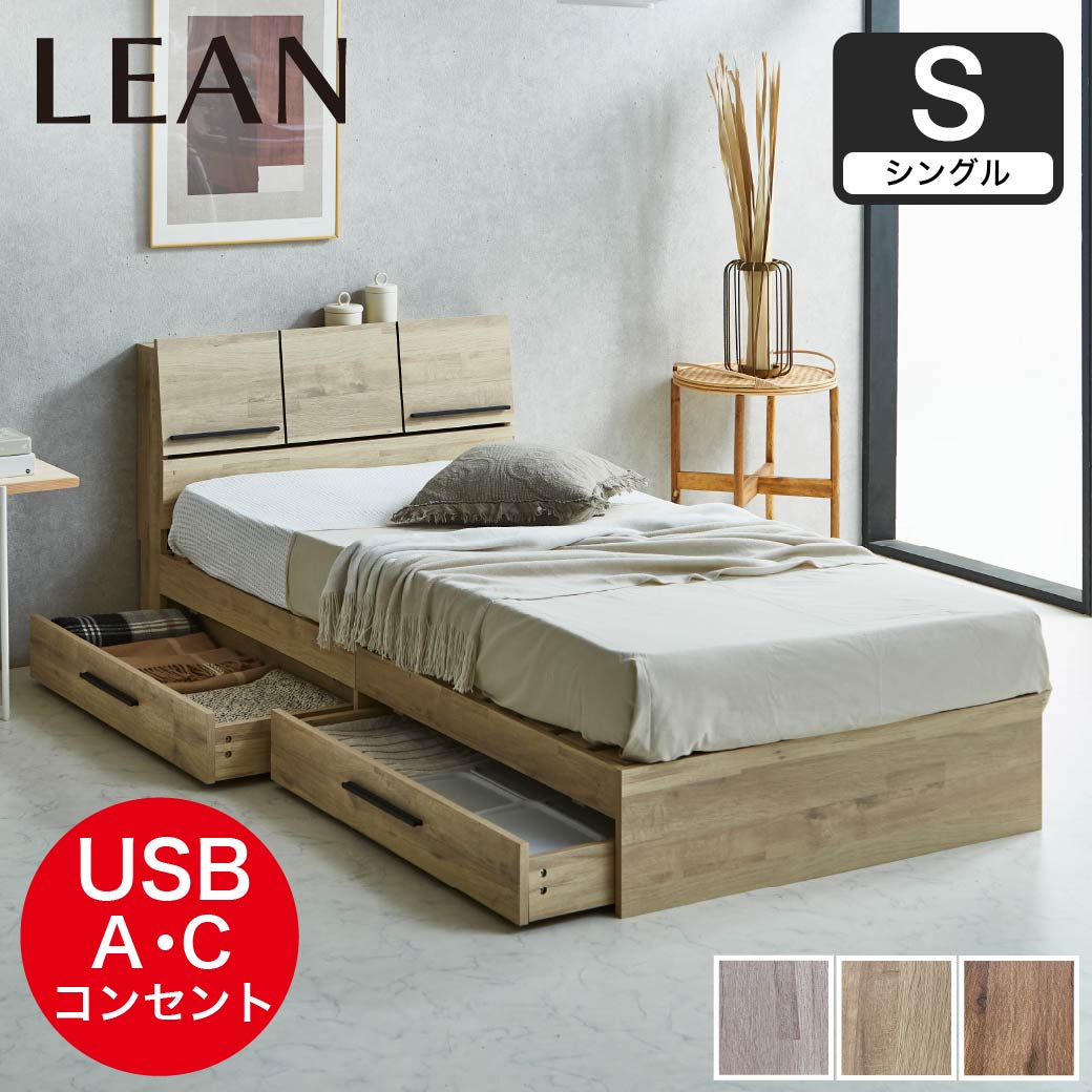 | 収納ベッド「リーン」は、iPadが置けるディスプレイ棚が特徴のモダンな木目調デザインです。このベッドは引出し2杯付き・大容量のベッド下収納、そして4口のコンセント(2通常+USB-A+USB-C)の機能性も兼ね備えている収納付きベッドです。引き出し2杯はキャスター付きで、スムーズに開閉可能です。ヘッドボードは洗練されたデザインで、スマホやタブレットを置いて充電しながら使用できます。表面は傷に強いメラミン化粧板を使用しています。すのこ床板で通気性抜群です。 ■保証期間:1年 ■サイズ(約):幅97×奥行209.7×高さ78cm 引出し外寸/内寸:幅97(92.4)×長さ40.6(37)×高さ20.2(9.5)cm 床面高26.5cm コードの長さ:185cm ・マットレス:幅97×長さ195×厚さ20cm ■材 質:MDF( 表面シート貼り)、LVL マットレス:表面生地:ポリエステル100% 、ニット織 、側面生地:3Dメッシュ、中材:ポケットコイル、ウレタン、白色ピュアフェルト ■耐荷重(約):150kg ■組 立: お客様組立品(2名約90分)※必要工具:プラスドライバー ■生産国:中国 ■梱 包:3個口:(3-1)101×42×15cm(27kg)(3-2)39×16×104cm(24.5kg)(3-3)マットレス ■備考:【NA】【BR】【WGY】※納期表示の異なる商品を同時に購入した場合、納期の遅い商品とまとめて発送する場合がございます。予めご了承ください。 |