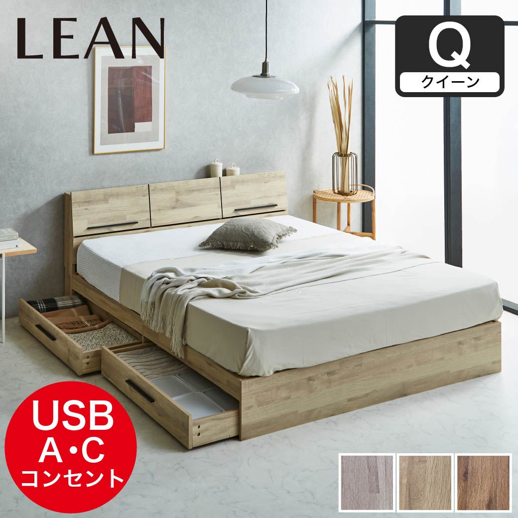 | 収納ベッド「リーン」は、iPadが置けるディスプレイ棚が特徴のモダンな木目調デザインです。このベッドは引出し2杯付き・大容量のベッド下収納、そして4口のコンセント(2通常+USB-A+USB-C)の機能性も兼ね備えている収納付きベッドです。引き出し2杯はキャスター付きで、スムーズに開閉可能です。ヘッドボードは洗練されたデザインで、スマホやタブレットを置いて充電しながら使用できます。表面は傷に強いメラミン化粧板を使用しています。すのこ床板で通気性抜群です。 ■保証期間:1年 ■サイズ(約):幅160×奥行209.7×高さ78cm 引出し外寸/内寸:幅97(92.4)×長さ40.6(37)×高さ20.2(9.5)cm 床面高26.5cm コードの長さ:185cm ・マットレス:幅160×長さ195×厚さ20cm ■材 質:MDF( 表面シート貼り)、LVL マットレス:表面生地:ポリエステル100% 、ニット織 、側面生地:3Dメッシュ、中材:ポケットコイル、ウレタン、白色ピュアフェルト ■耐荷重(約):150kg ■組 立: お客様組立品(2名約90分)※必要工具:プラスドライバー ■生産国:中国 ■梱 包:4個口:(4-1)166×37×12.5cm(27kg)(4-2)102×41×13cm(21kg)(4-3)161×30×18cm(26kg)(4-4)マットレス ■備考:【NA】【BR】【WGY】※納期表示の異なる商品を同時に購入した場合、納期の遅い商品とまとめて発送する場合がございます。予めご了承ください。 |