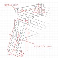 ハシゴに補強板を付け、極太の支柱を採用した安心の頑丈設計のロフトベッドです。