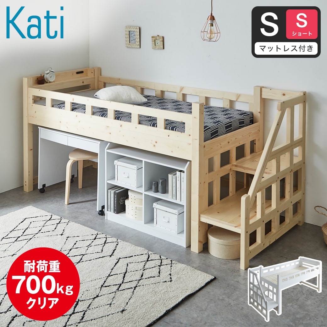| 人気の当社オリジナルロフトベッドカティに階段付きタイプが登場! 高すぎないロータイプ。 昇り降りしやすい階段のステップには補強板を付け、極太の支柱を採用した頑丈設計の階段付きロフトベッドです。 ヘッドにはコンセントが2口付いた便利な棚付き。 床面は通気性の良いすのこ床板でオールシーズン快適に眠れます! ■保証期間:1年 ■サイズ(約):・ベッド外寸:幅103.6×長さ240.5×高さ120cm ・厚さ11cmマットレス外寸:幅97×長さ180×厚さ11cm ■材 質:・ベッド:天然木パイン材(ラッカー塗装)、LVL ・厚さ11cmポケットコイルマットレス:ポリエステル100%(3Dメッシュ)、ポケットコイル、ウレタン、フェルト ■耐荷重(約):350kg ■組 立:お客様組立品(大人2人約60分)、※組立に必要な工具は付属しています。 ■生産国:中国 ■梱 包:・ベッド:シングルショート:5個口:(5-1)125×31×14.5cm(13kg)(5-2)186×42×9cm(14kg)(5-3)125.5×108×6.5cm(18.2kg)(5-4)107×41.5×8cm(7.7kg)(5-5)101×93×6.5cm(13.6kg) ・マットレス:1梱包 ■備考: |