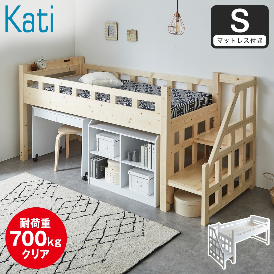 | 人気の当社オリジナルロフトベッドカティに階段付きタイプが登場! 高すぎないロータイプ。 昇り降りしやすい階段のステップには補強板を付け、極太の支柱を採用した頑丈設計の階段付きロフトベッドです。 ヘッドにはコンセントが2口付いた便利な棚付き。 床面は通気性の良いすのこ床板でオールシーズン快適に眠れます! ■保証期間:1年 ■サイズ(約):・ベッド外寸:幅103.6×長さ254.5×高さ120cm ・厚さ11cmマットレス外寸:幅97×長さ195×厚さ11cm ■材 質:・ベッド:天然木パイン材(ラッカー塗装)、LVL ・厚さ11cmポケットコイルマットレス:ポリエステル100%(3Dメッシュ)、ポケットコイル、ウレタン、フェルト ■耐荷重(約):350kg ■組 立:お客様組立品(大人2人約60分)、※組立に必要な工具は付属しています。 ■生産国:中国 ■梱 包:・ベッド:シングル:5個口:(5-1)126×31×15cm(14kg)(5-2)200×42×9cm(15.5kg)(5-3)126×108×7cm(18.3kg)(5-4)108×42×8cm(7.6kg)(5-5)102.5×99×6.5cm(14.2kg) ・マットレス:1梱包 ■備考: |