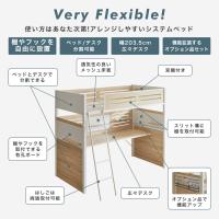 | 自分好みにとことんカスタマイズできるシステムベッド「エリアス」。 ベッド本体のサイドパネルやデスク正面には有孔ボードが設けられており、付属のフックや可動棚を自由に配置できます。 また、デスクのパネル左右にスリット状のスペースがあり、こちらにも可動棚を設置できます。 更にオプションパーツをセットで購入すれば、使い勝手の良いアイアン製の棚やレール等が更に追加!使い方の幅がさらに広がります。 ベッドとデスクは分割して使用することもできるため、ライフスタイルや成長に合わせた柔軟な使い方ができるのも大きな魅力です。 ■保証期間:1年 ■サイズ(約):幅208×奥行104.8×高さ180cm ■材 質:パーティクルボード、スチール ■耐荷重(約):150kg ■組 立:お客様組立品(大人2人約100分) ※組立時、別途プラスドライバー、ラジオペンチが必要。 ■生産国:マレーシア ■梱 包:ベッド本体:3個口:(3-1)102.5×73×10cm(36.5kg),(3-2)212×65×11cm(40kg),(3-3)206×37.5×11cm(32.4kg) メッシュ床板:1個口:101.5×99×7cm(12kg) オプション品:1個口:60×17×13cm(4.3kg) ■備考:※納期表示の異なる商品を同時に購入した場合、納期の遅い商品とまとめて発送する場合がございます。予めご了承ください。 ※オプション品のカラーリングはナチュラル-ブラックのみです。 ■関連商品: Eliasシリーズ一覧 ベッドフレームのみ 11cm厚薄型ポケットコイルマットレスセット オプション品付属セット マットレス&オプション品付属セット 11cm厚薄型ポケットコイルマットレス |