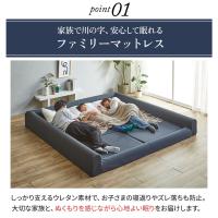 | 家族みんなで川の字で寝れる、ワイドなファミリーベッド。S+S(幅224cm)/S+SD(幅247cm)の2サイズ展開で、2~4人でもゆったり眠れる大きさです。本体は2つのパーツで構成されています。「外枠」と「三つ折りウレタンマットレス」を組み合わせることで、ファミリーマットレスが完成します。35Dの高密度ウレタンを採用することで、へたりにくく、つぶれにくいのでしっかりと身体を支えます。 ■保証期間:ファミリーベッド・三つ折りマットレス1年、トッパー3年 ■サイズ(約): 【外枠】 幅224cm×長さ226cm×厚さ30cm 【三つ折りマットレス】 幅97cm×長さ195cm×厚さ10cm(2枚) 【トッパー】幅194cm×長さ195cm×厚さ8cm ■材 質: 【外枠】 表生地:ポリエステル100%/ジッパー付き Teflon加工(防水・防油・防汚) 底部布:ポリエステル100% インナーカバー:メッシュ生地(ポリエステル100%) 中材:高密度ウレタンフォーム D35 【三つ折りマットレス】 表生地:ポリエステル100%/ジッパー付き Teflon加工(防水・防油・防汚) 中身:高密度ウレタン D35 【トッパー】 <表面生地>竹繊維ニット(ポリプロピレン綿入り)ポリエステル生地 <内部>ウレタン D25、ミニポケットコイル、フェルト <底面布>滑り止め生地 <コイル数>1296個 ■組 立:お客様組立品(2名約20分) ※マットレス・トッパーは圧縮袋から開封する作業があります。 ■生産国:中国 |