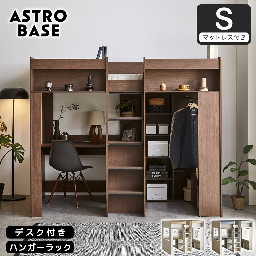 | 当社オリジナルのシステムベッド「アストロベース」 ベッド正面の中央ハシゴを起点に、ベッド下を左右で使い分け。眠る・学ぶ・しまうをベッド下に。デスクで集中し、ハンガー収納で身支度も完結。棚収納も備えた、空間を無駄なく活かした機能的デザイン、自分だけの“基地(ベース)”のようなパーソナル空間をつくれるシステムベッドです。 ■保証期間:1年 ■サイズ(約):幅201×奥行122.2×高さ180.4cm ・ベッド外寸:幅122.2×長さ201×高さ180.4cm ・床面有効内寸:幅97×長さ198.5cm ・床面高:146.5cm ・マットレス外寸:幅97×長さ195×厚11cm ■材 質:・ベッド:パーティクルボード、スチール ・厚さ11cmポケットコイルマットレス:ポリエステル100%(3Dメッシュ)、ポケットコイル、ウレタン、フェルト ■耐荷重(約):100kg ■組 立:お客様組立品(大人2人約300分)、※組立時、別途プラスドライバーが必要。 ■生産国:・ベッド:マレーシア ・マットレス:中国 ■梱 包:・ベッド:6個口:(6-1)90×55×13cm(29.4kg) (6-2)205×44×7cm(29.3kg) (6-3)189×28×13cm(28kg) (6-4)147×45×10cm(33.7kg) (6-5)109×55×16cm(34.3kg) (6-6)101.5×99×7cm(12kg) ・マットレス:1個口(1-1)103×28×28cm(15kg) ■備考:【BR】※納期表示の異なる商品を同時に購入した場合、納期の遅い商品とまとめて発送する場合がございます。予めご了承ください。 |