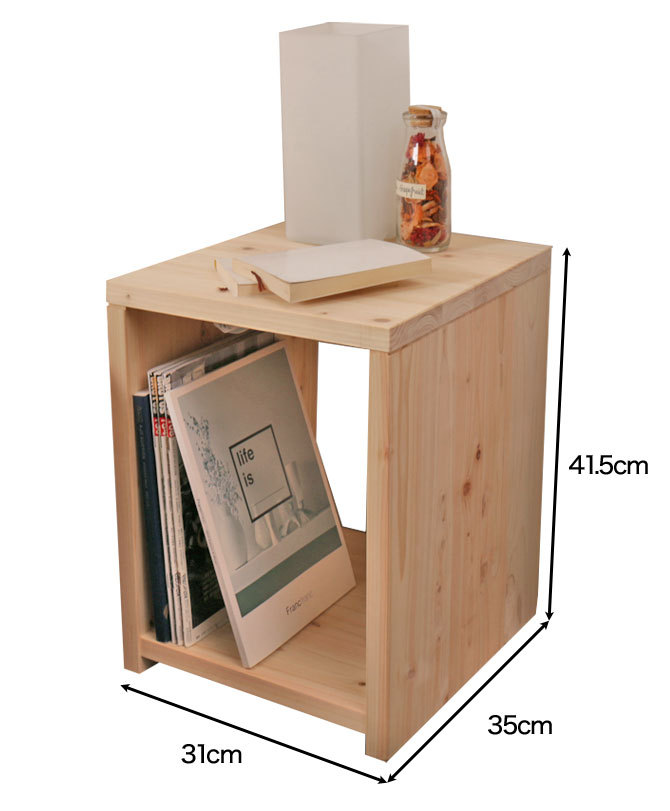 | 販売中のひのきすのこベッドにぴったりのナイトテーブルです。天板下の小棚には雑誌や本などを置けて枕元の収納としても便利です。一口コンセント付きでスマホの充電や枕元の間接照明の電源としてお使いいただけます。島根県産ひのきをふんだんに使用した安心と信頼の日本製で、無塗装のひのき材が寝室に森の爽やかな香りをお届けします。ノンホルマリンの部材を使用しているので、お子様やご年配の方でも安心してお使いいただけます。 ■サイズ(約):幅31×奥行35×高さ41.5cm ■材 質:島根県産ひのき ■組立:完成品 ■生産国:日本 |
