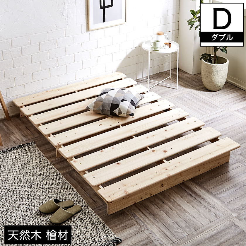| 総ヒノキ ステージベッド スノコベッド ダブル フレームのみ さわやかな森の香り。リラックス効果があると言われている「ひのき材」を贅沢に使用した総ひのきのすのこベッド。通気性よい すのこ仕様。 北欧風や和モダンのお部屋コーディネートとの相性のよい、シンプルな北欧調ベッドです。 無塗装の檜材を使用し、木そのものの優しくあたたかみのある風合いを感じられるベッドです。 がっちり頑丈なつくりで布団でもマットレスでもお使いいただくことができます。 フレーム・すのこ床板に合板使用無し。長い睡眠時間を共に過ごすベッドだからこそ、環境とヒトに優しい安心安全なつくりにこだわりました。 ■サイズ(約): 幅139×奥行197×高さ19cm すのこ幅1枚:幅約17cm すのこ厚さ:約2cm ■材質: 天然木 国産ひのき材(無塗装) ■耐荷重(約):150kg ■組立:お客様組立品(2名30分) ■生産国:企画:日本 生産国:ベトナム ■梱包:1個口:143×38×18.5(33.5kg) ■備考: ※天然木を使用している為、節がございます。ひのき天然木の素材の良さ、味わいとしてご理解下さい。 ※無垢材を貼り合わせた無垢集成材檜を一部使用しております。 ※商品画像は色合いや素材感が実際の商品と異なる場合がございます。 モニター・ディスプレイによっても写り方が変ります。予めご了承ください。 【新】36112476 |