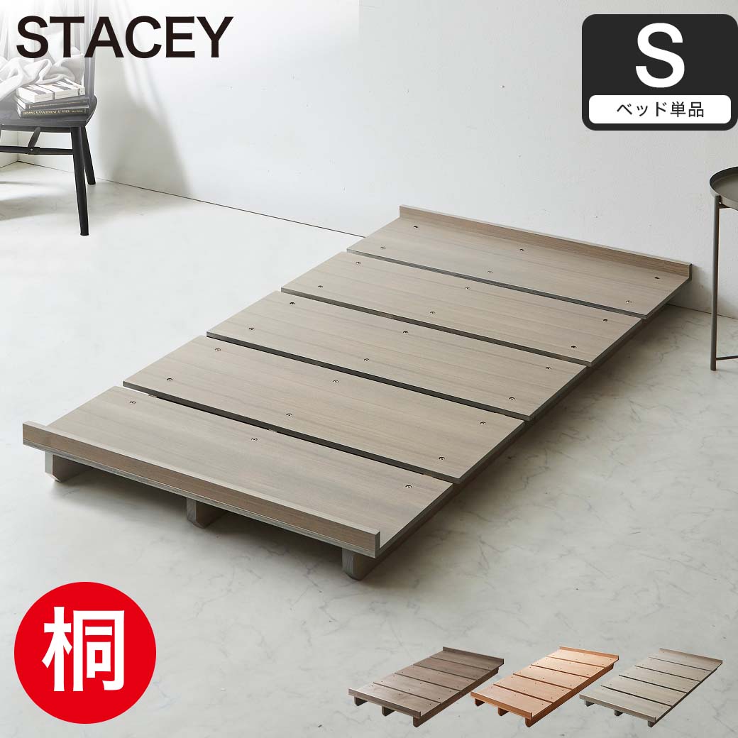 ステイシー ステージベッド シングル ヘッドレス 桐 天然木 ダークブラウン ナチュラル ローベッド フロアベッド シングルベッド 北欧風 フレームのみ ベット