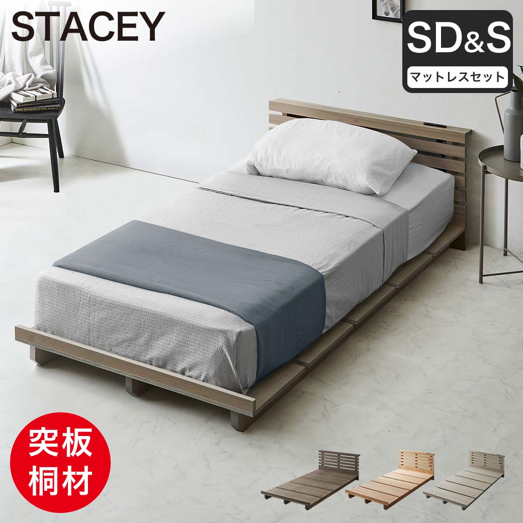 | 桐天然木を使用した木目の暖かみあるステージベッドです。シンプルで飽きの来ない北欧風のデザインにコンパクトで省スペースなフォルム。天井を高く、空間にゆとりを持たせるロータイプのベッドで、お部屋を広々と感じることができます。マットレスのワンサイズ上のフレームをお使いいただくことで、マットレス横のステージ部分を読み終わった雑誌やスマートフォン、タブレットを置いておくことのできる宮としてお使いいただくことが出来ます。3本のフレーム部分(脚部)がしっかりと床板を支え、安定感を生み出します。カラーはナチュラルとダークブラウンの2色からお選びいただけます。 当社オリジナル高密度ポケットコイルマットレスのセットで優れた通気性と耐圧分散で快適な睡眠をサポート、フレームにゆとりのある、ステージ部分を有効に使える開放的なマットレスセットです。 ■サイズ(約): フレーム:セミダブル マットレス:シングル 本体:幅120×長さ208×高さ56(床面11.5)cm 床面有効寸法:幅120×長さ196cm マットレス寸法:幅100×長さ195×厚さ20cm ■材質: 【ベッドフレーム】本体:ダークブラウン/ウォールナット天然木、ナチュラル・グレージュ/タモ天然木、床板/桐天然木(一部LVL)、脚部/パイン天然木 【マットレス】表面生地:ポリエステル100% 、ニット織 側面生地:3Dメッシュ 中材:ポケットコイル、ウレタン、白色ピュアフェルト ■耐荷重(約):150kg ■組立:お客様組立品(2名約30分) ■生産国:中国 ■梱包:・梱包サイズ(約): ・63×23×129cm(27.8kg) ・マットレス ■備考: ※ 2口スライドコンセント付き(100V/15A/1500W) ※現行の仕様ではフット部の角に切り欠きの加工を施しております。 |