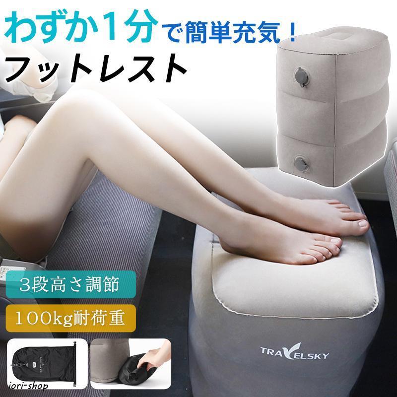 フットレスト 飛行機 急速充填 3段階高さ調整 車 新幹線 快適 足置き 足まくら クッション コンパクト 車中泊 椅子 空気入れ付き 収納袋付 旅行