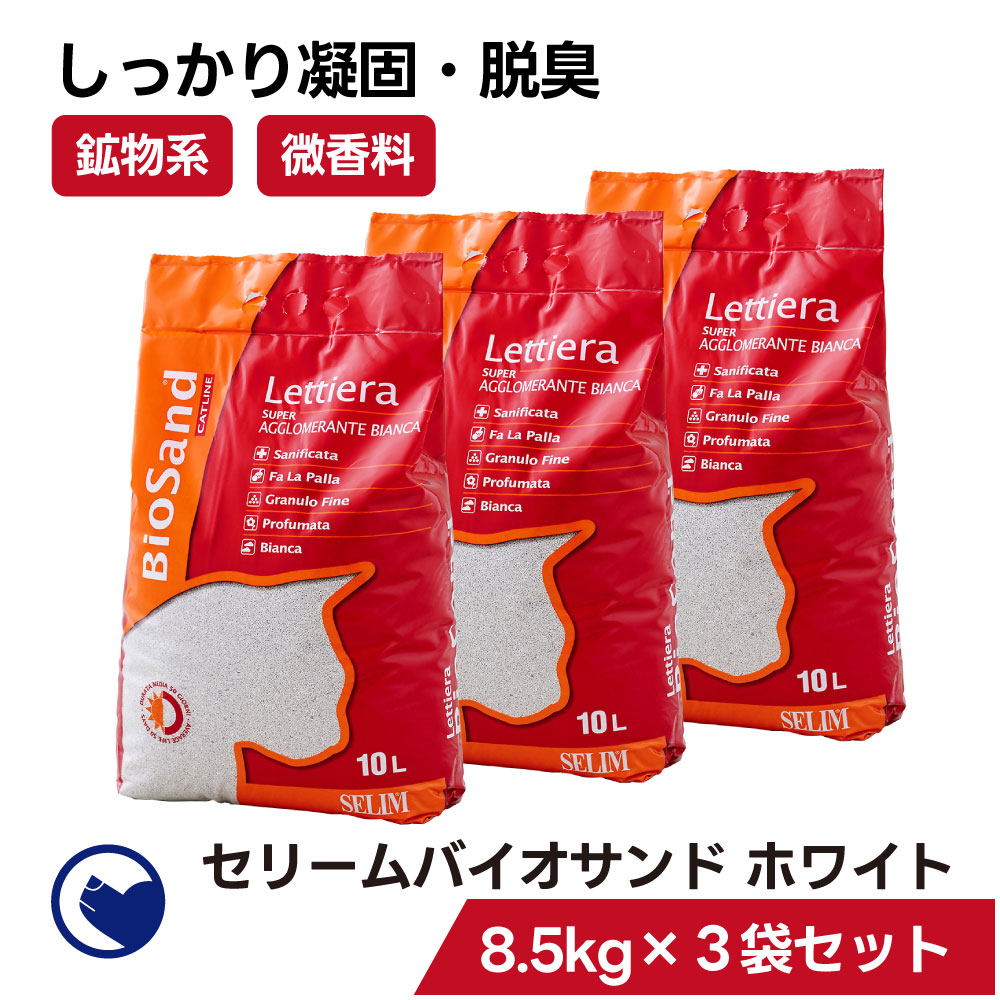 (今月のPickUPセール) [猫砂 セリーム バイオサンド ホワイト 8.5kg 3袋セット] ネコ砂 ねこ砂 鉱物 ベントナイト 自動 トイレ 固まる