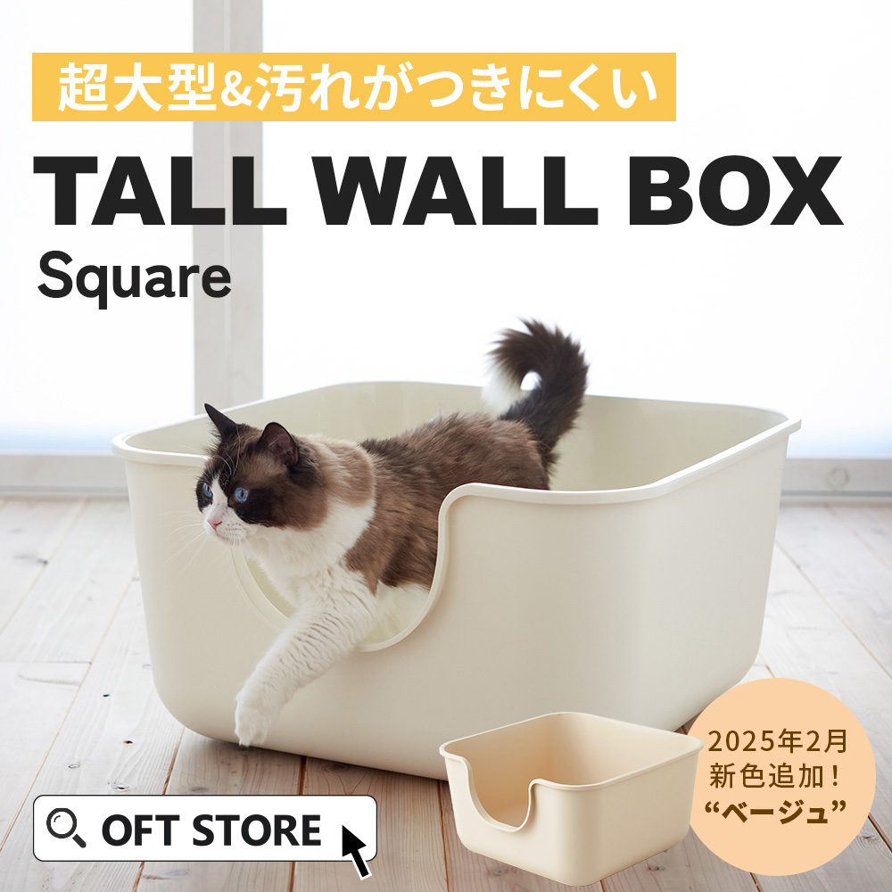 (OFT)猫 猫用 ネコ ねこ用 トイレ 猫トイレ ねこトイレ キャットトイレ トイレ本体 大容量 大きい 大きめ 大型 大型猫 大型ネコ スプレー 飛び散らない 飛び散り 深め 深い 多頭飼い おしゃれ シンプル [TALL WALL BOX スクエア]