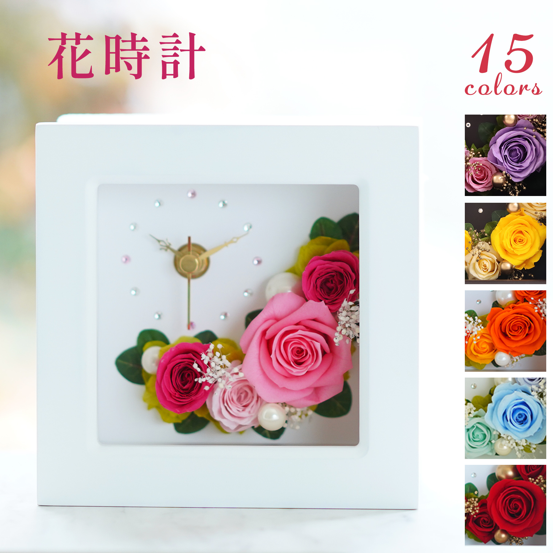 プリザーブドフラワー 置き時計 時計 花時計 退職祝い 誕生日 結婚祝い お祝い プレゼント ギフト 還暦祝い 女性 還暦 古希 喜寿 米寿 卒寿 白寿