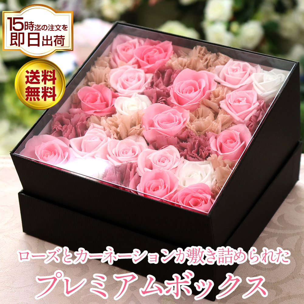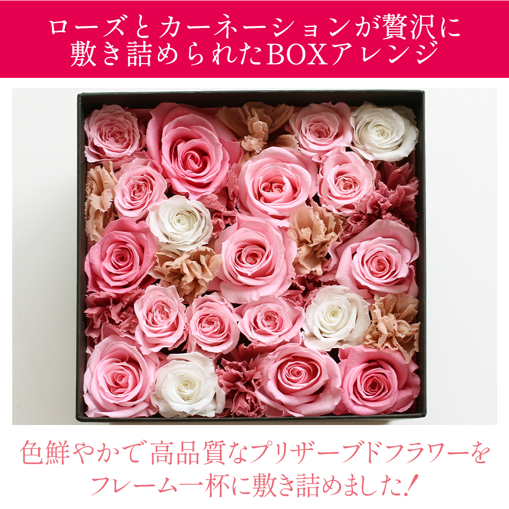 プリザーブドフラワー カーネーション 入り ボックス ギフト 誕生日 結婚祝い フラワー プレゼント お祝い 還暦祝い 花 ブリザーブドフラワー 送料無料