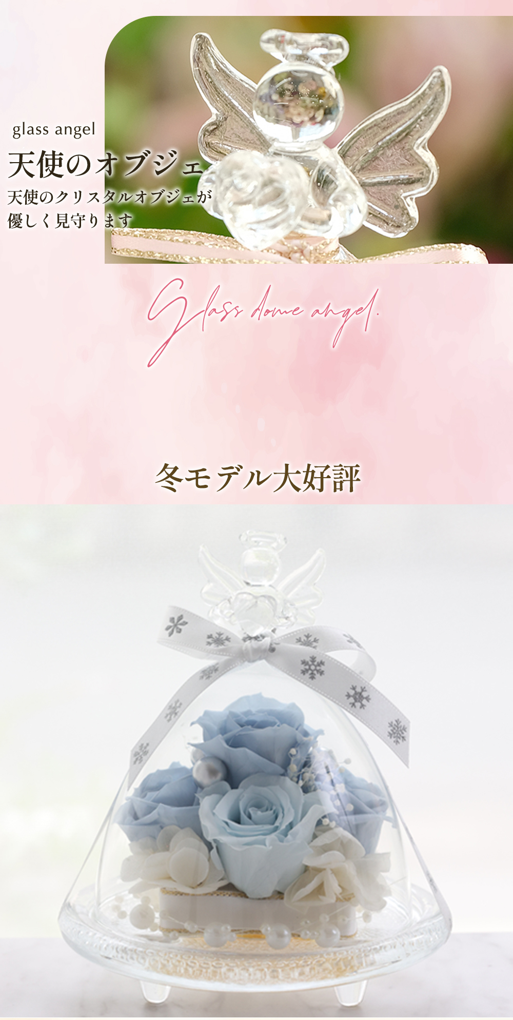 プリザーブドフラワー ガラスドーム エンジェル プレゼント 退職祝い 結婚祝い 還暦祝い ギフト お祝い 花 フラワー 女性 ペット 犬 お供え お悔み クリスマス