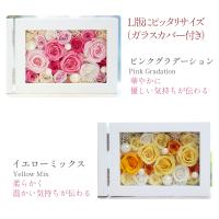 プリザーブドフラワーの写真立ては、お祝い、御礼、感謝、労い、エール等、全ての温かいお気持ちを込めるのに最適です。