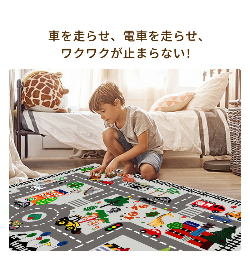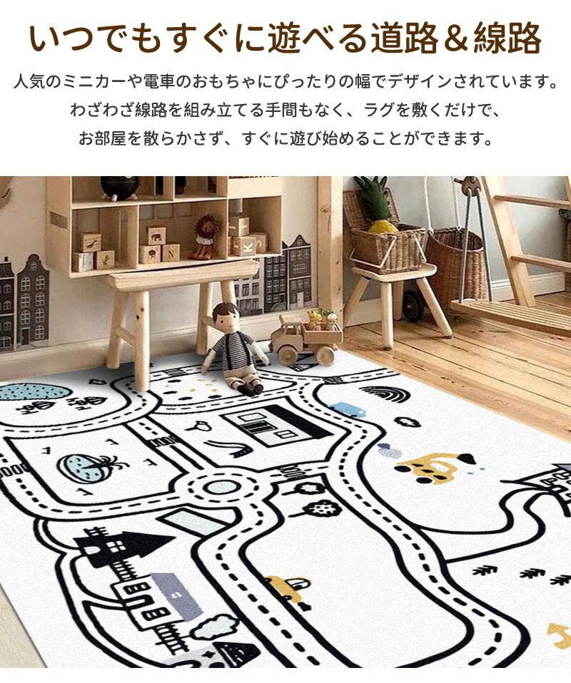 ラグ 車 子供部屋 プレイマット プレイ 男の子 子供用 カーペット 子供 女の子 キッズ ラグマット マット 洗える 防音 防汚 キッズラグ ベビー トミカ 道路