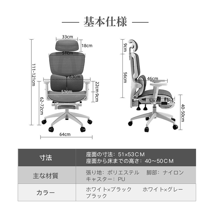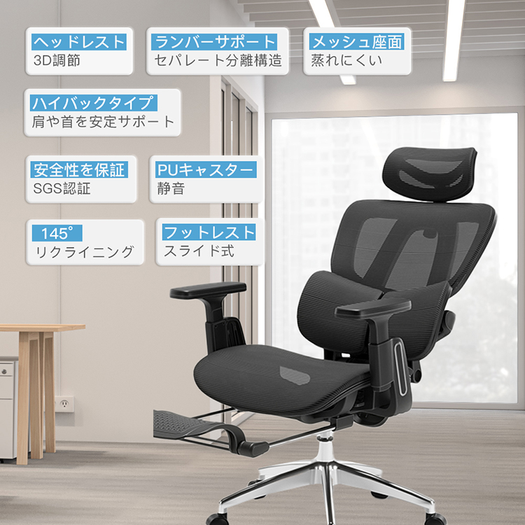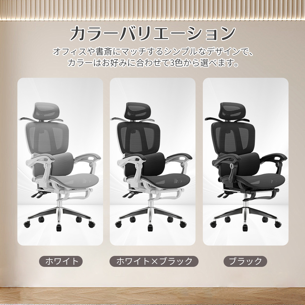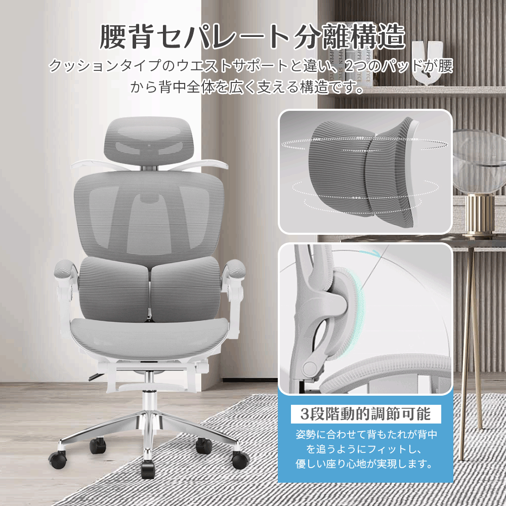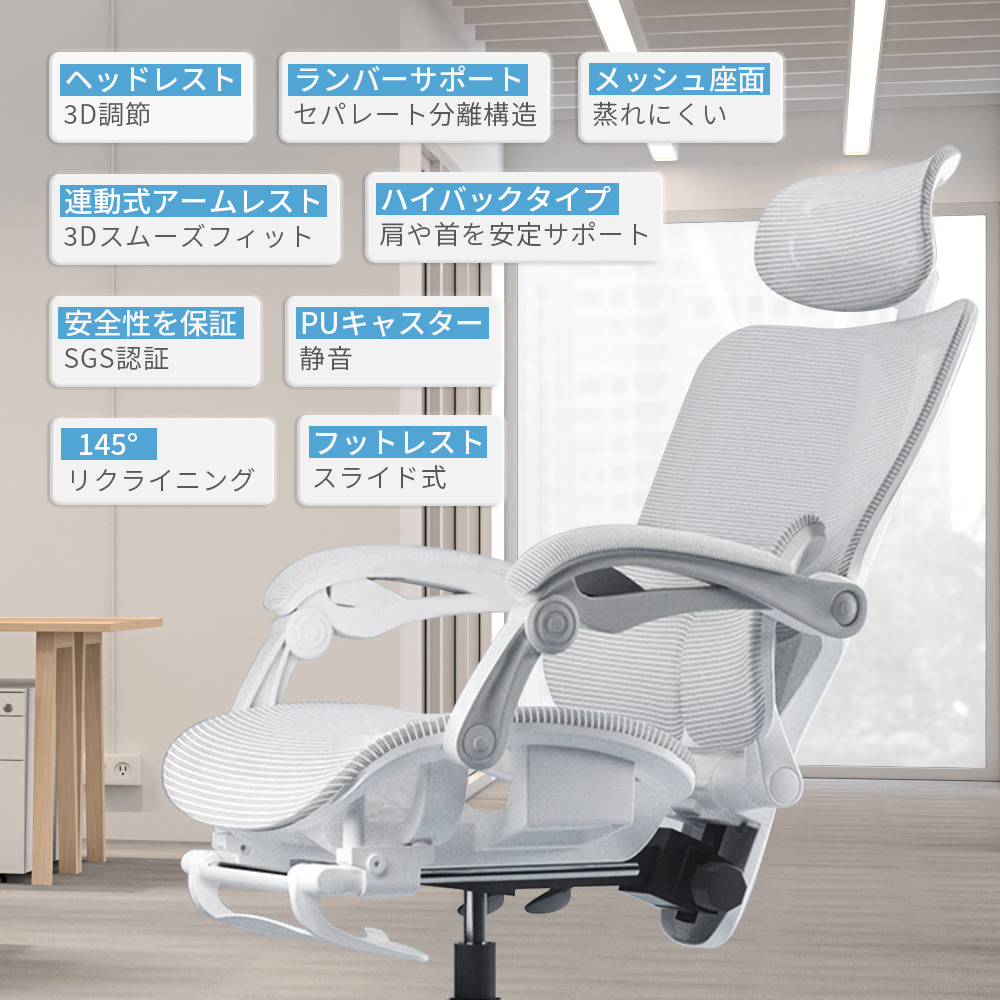 椅子 オフィスチェア デスクチェア リクライニングチェア パソコンチェア ゲーミングチェア 腰サポートバー メッシュ 通気性 無段階昇降 360度回転 アームレスト 人間工学