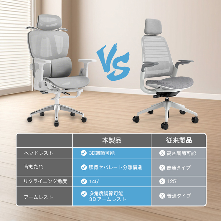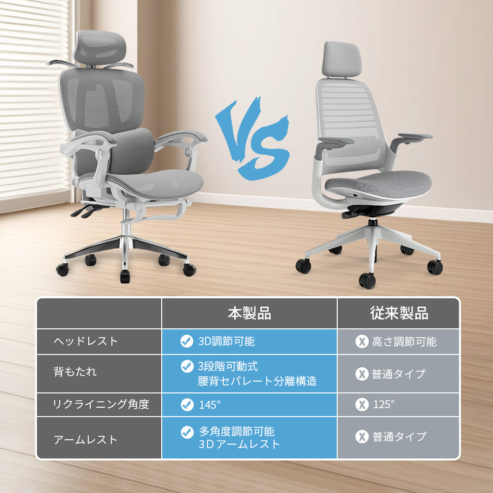 従来製品 長時間座り姿勢が続くと慢性的に腰に負担がかかります。