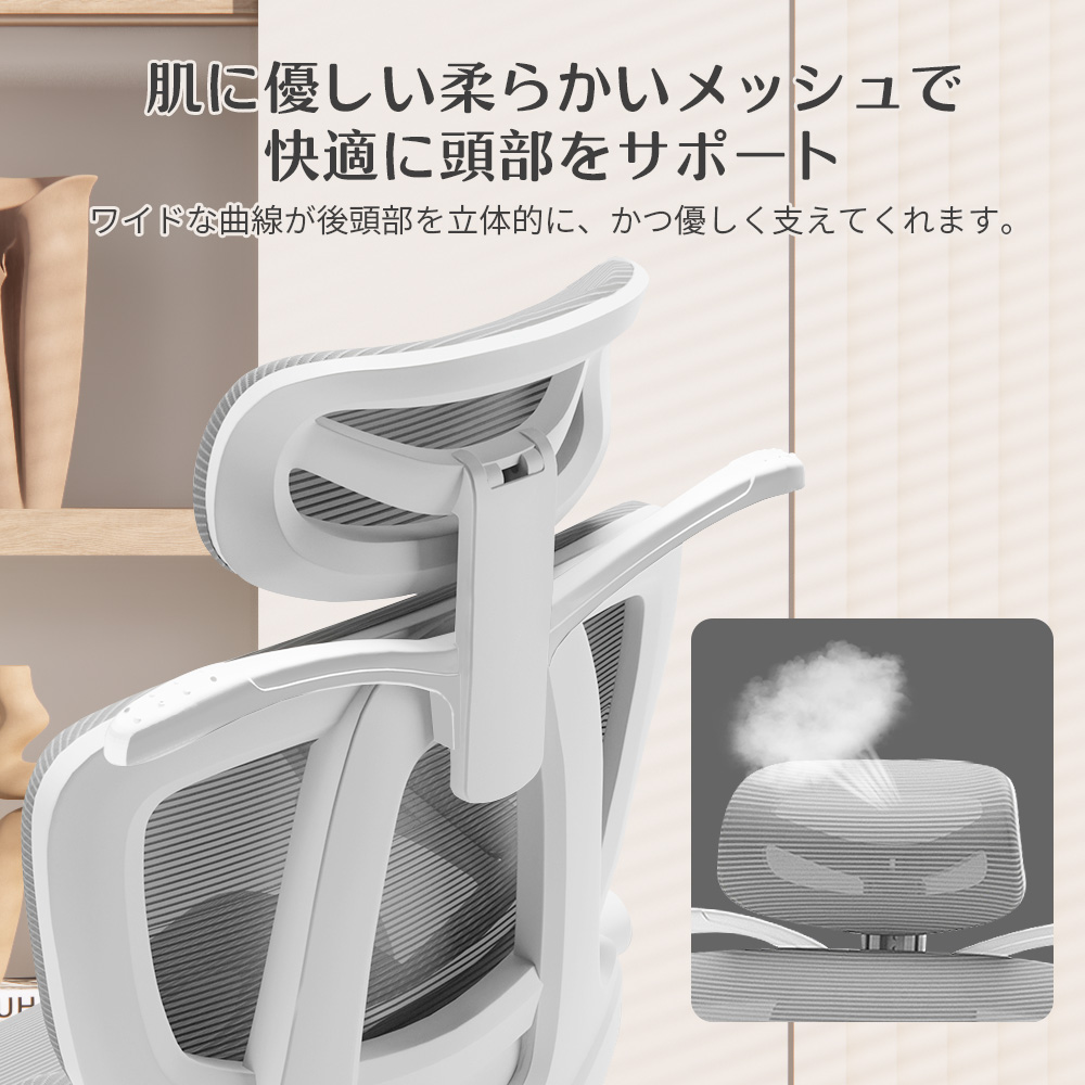 肌に優しい柔らかいメッシュで快適に頭部をサポート