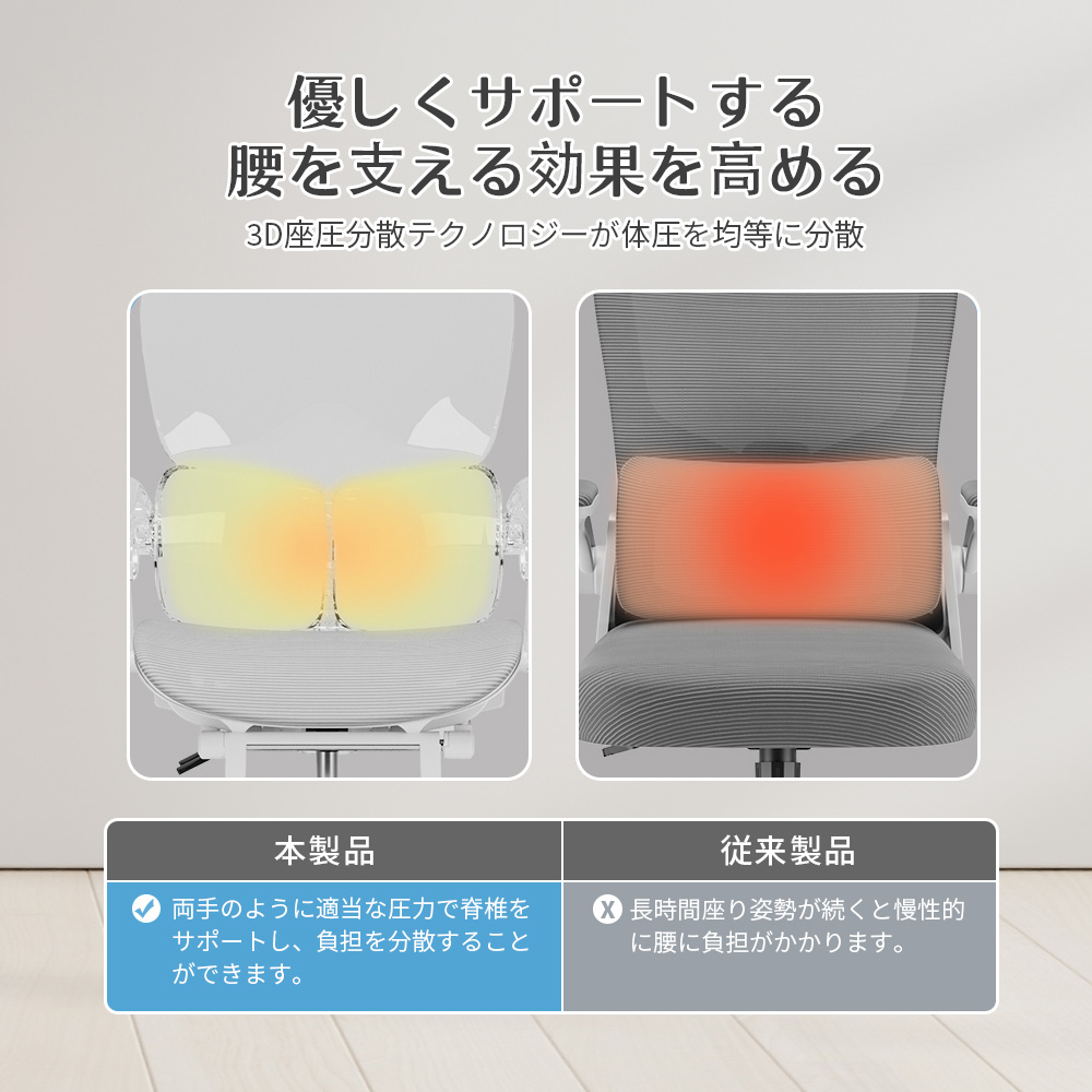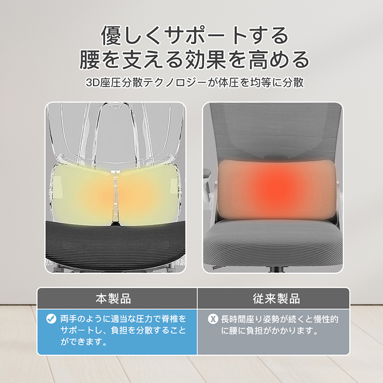 3D座圧分散テクノロジーが体圧を均等に分散