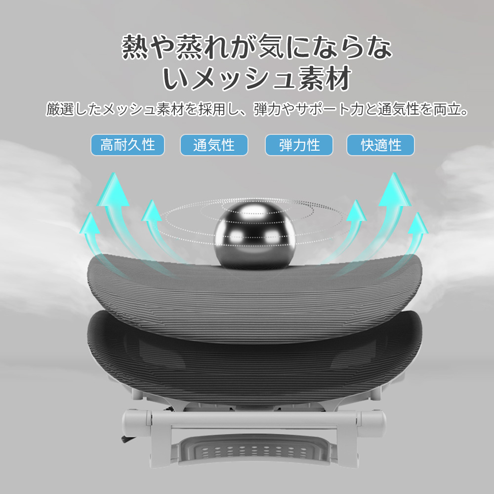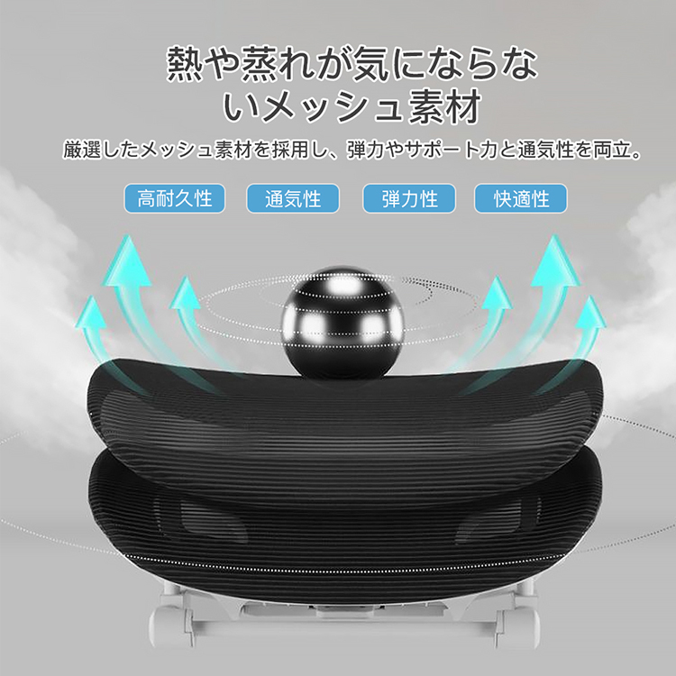 厳選したメッシュ素材を採用し、弾力やサポート力と通気性を両立。