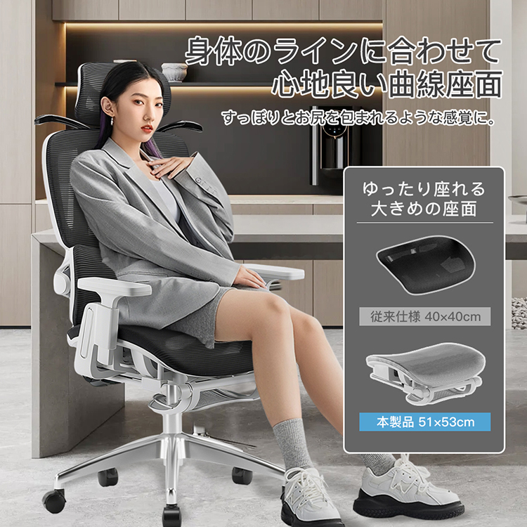 身体のラインに合わせて 心地良い曲線座面