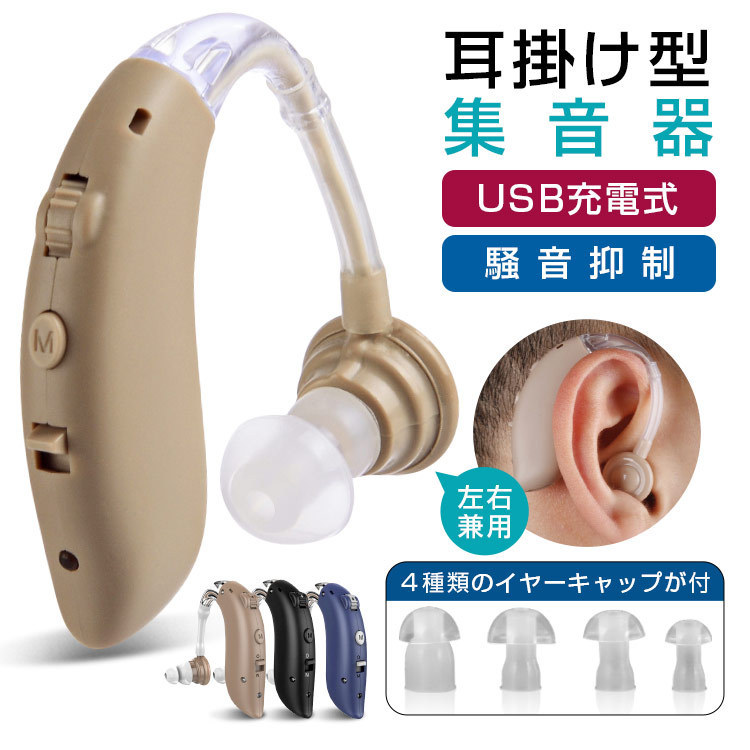集音器 高齢者 耳掛け型集音器 クリアで聞こえ 左右兼用 USB充電 騒音抑制 防水 ハウリング防止 4段階のボリューム調節 デュアル騒音抑制 助聴器 集音機 敬老日