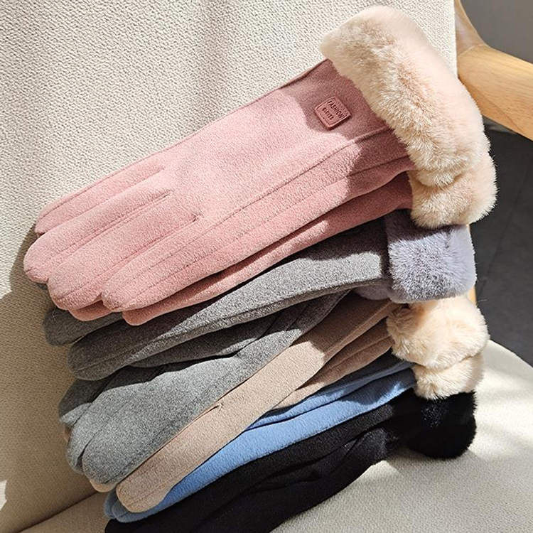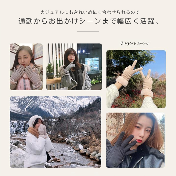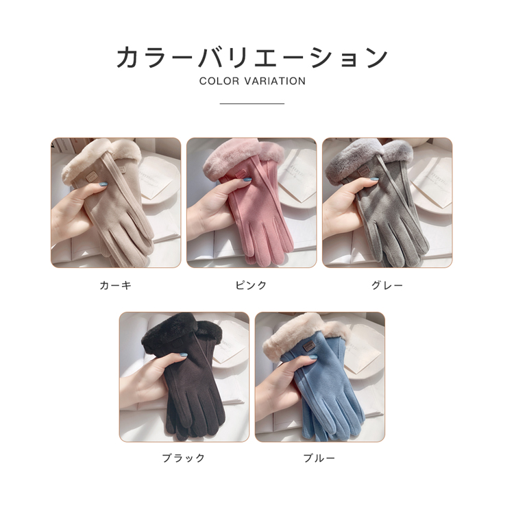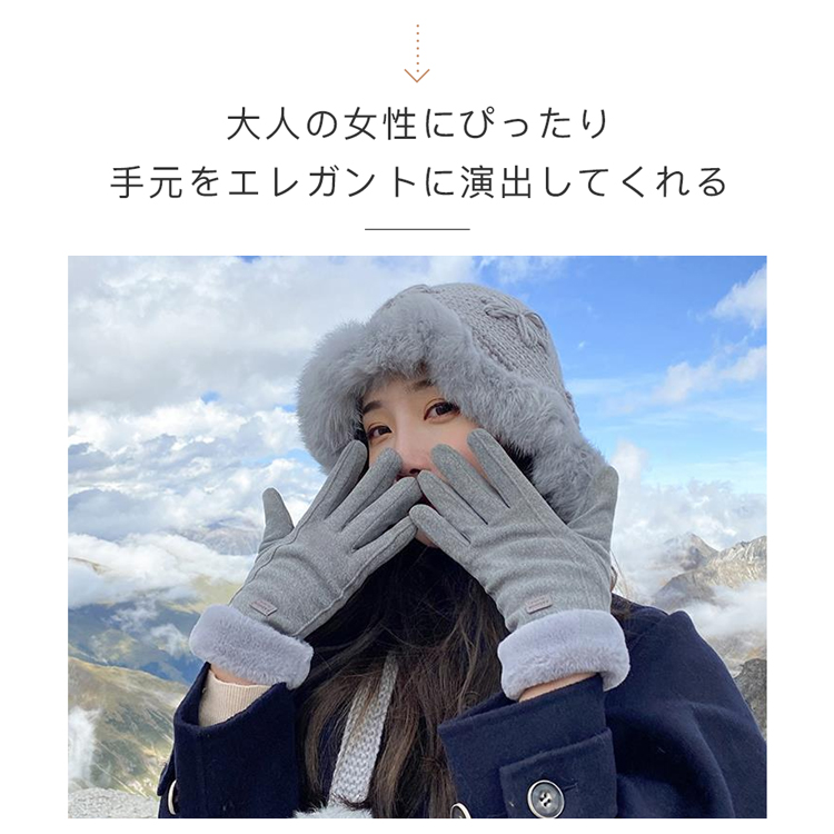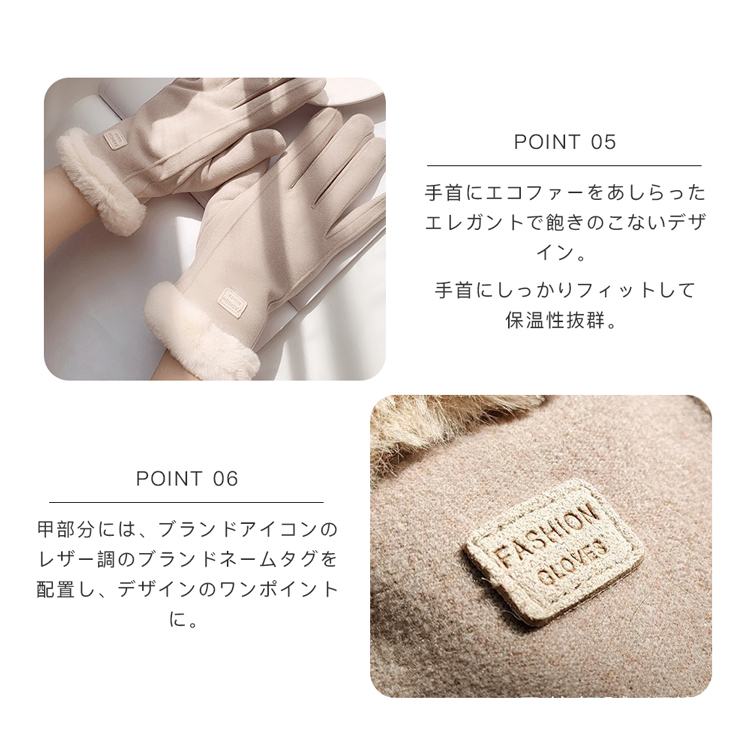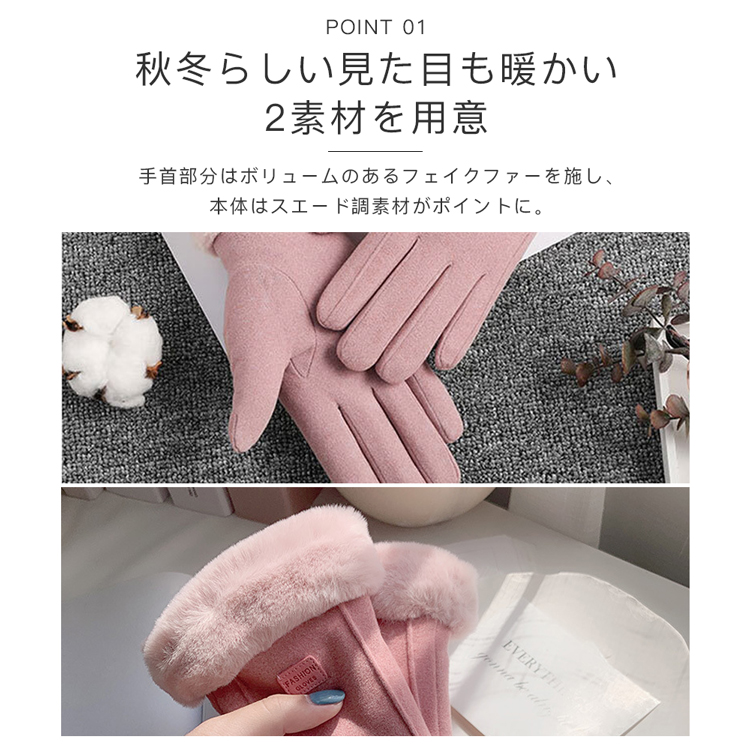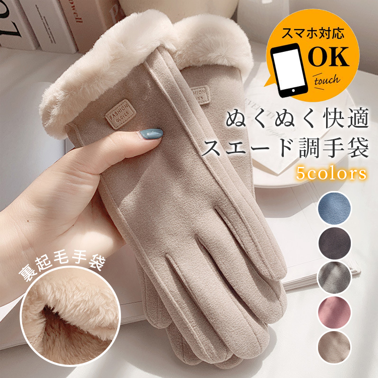 手袋 グローブ 裏起毛 スエード調 スマホ操作 レディース 女性 ぬくぬく 防寒 秋冬 手首エコファー フリーサイズ おしゃれ カジュアル 通勤 外出 快適