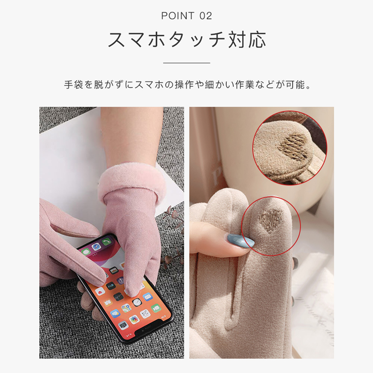 ・タッチ対応で手袋を脱がずにスマホの操作や細かい作業などが可能