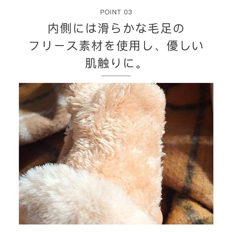 ・内側には滑らかなフリース素材を使用し、優しい肌触りに