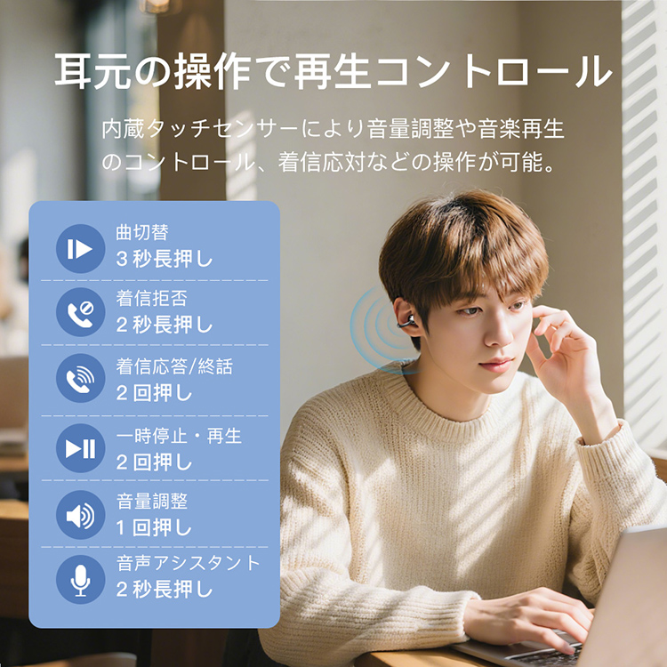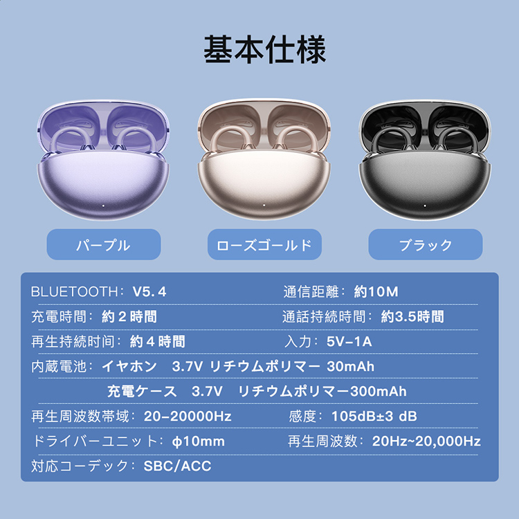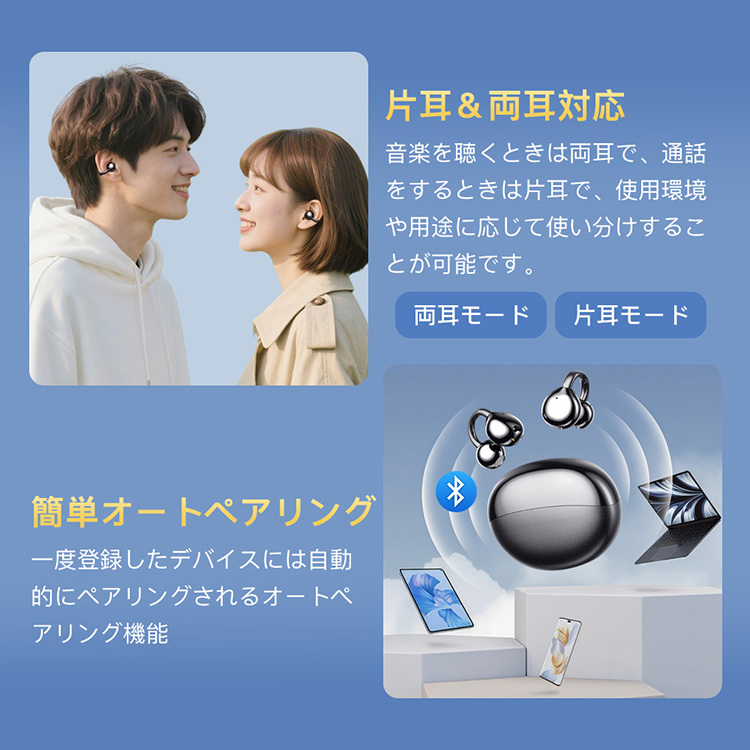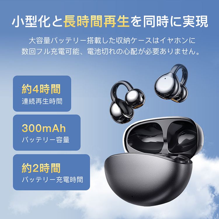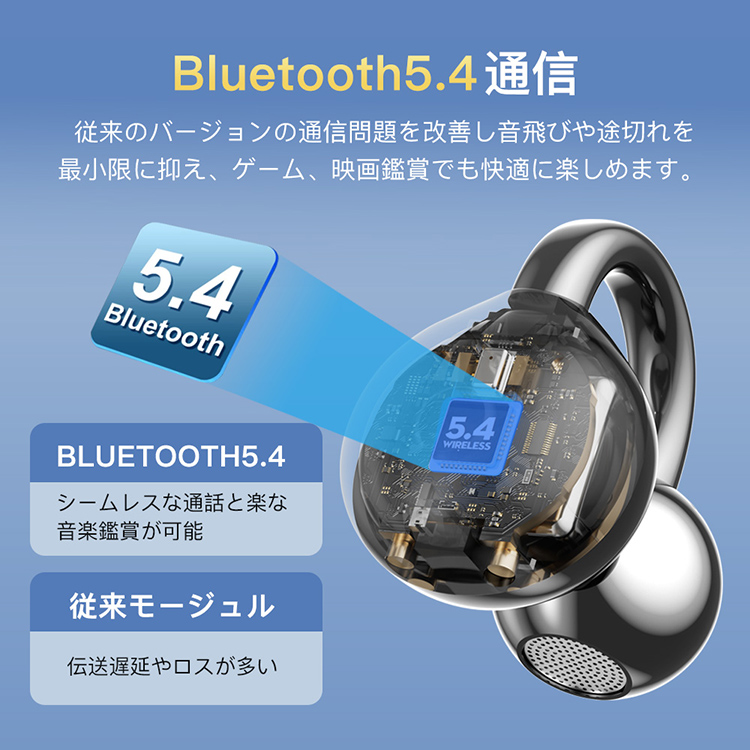 ワイヤレスイヤホン Bluetooth 5.4 空気伝導 イヤホン ワイヤレス 小型 軽量 高品質通話 圧迫感ゼロ イヤーカフ イヤホン 音漏れ防止 スポーツ 超軽量 超長待機