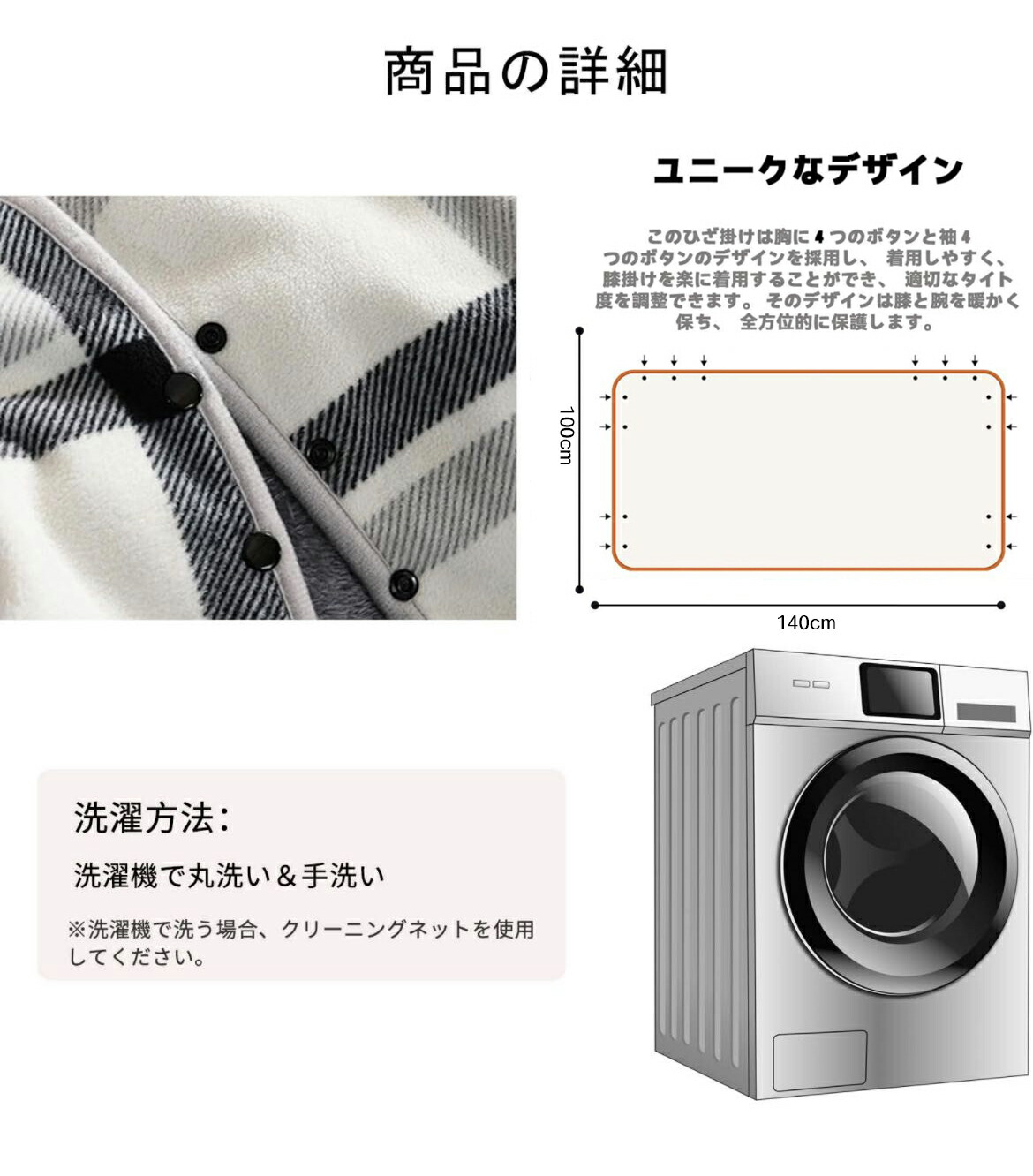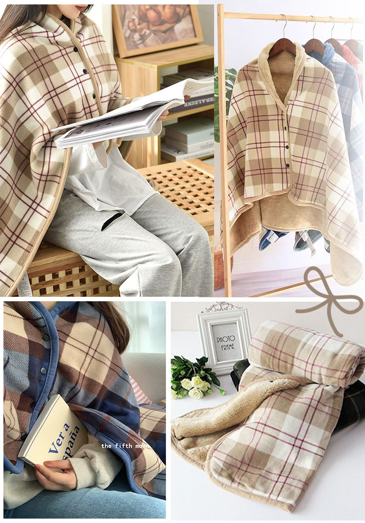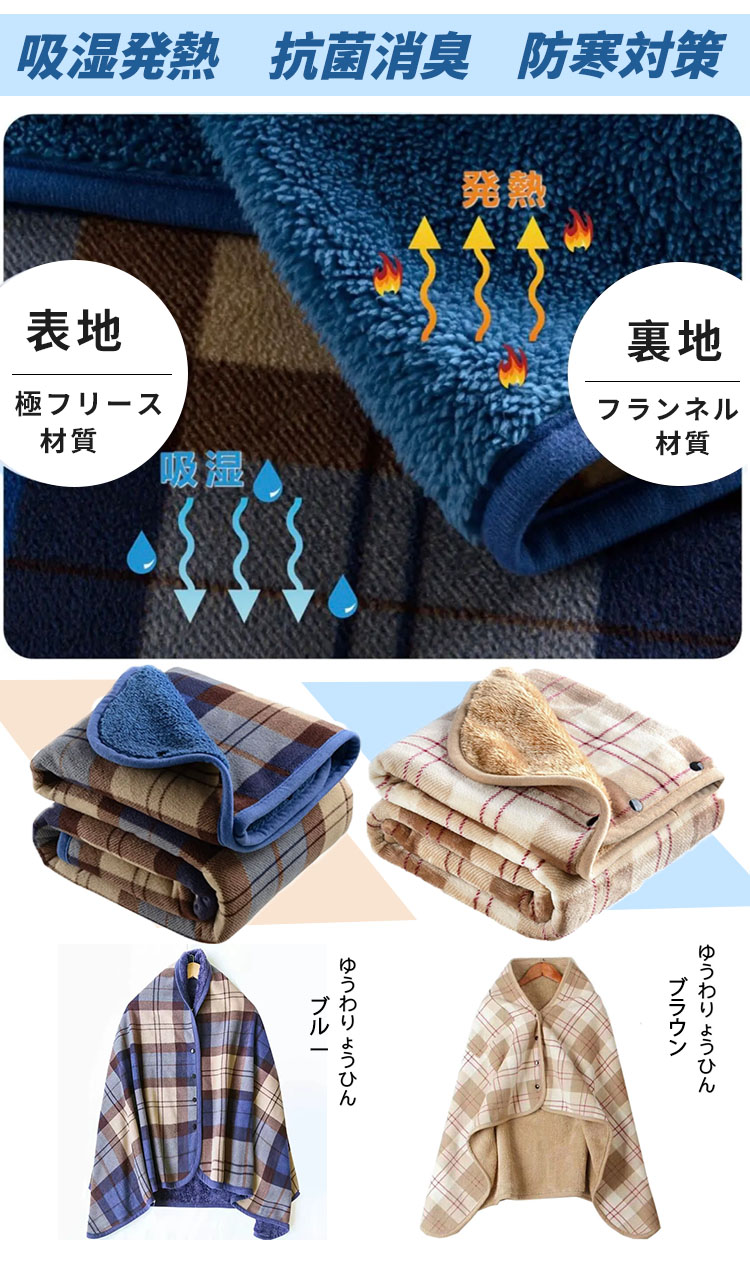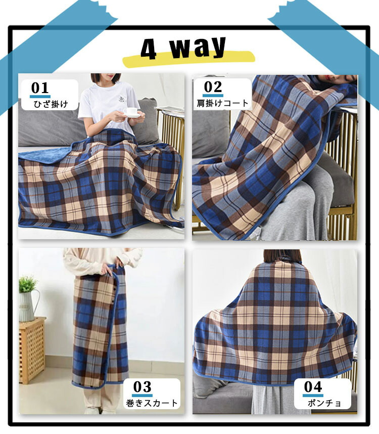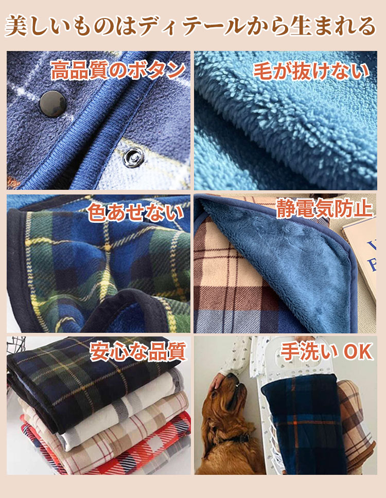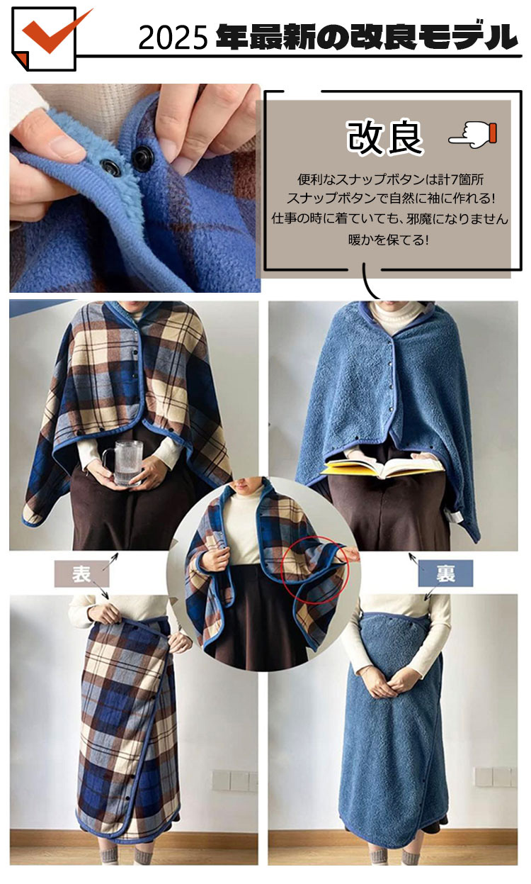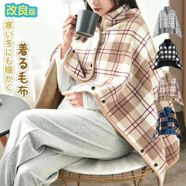 ひざ掛け ブランケット 大判 4way 着る毛布 ボタン付き 改良 防寒対策 あったか チェック柄 おしゃれ 吸湿保温 抗菌加工 静電気防止 洗濯可能 手触り 家