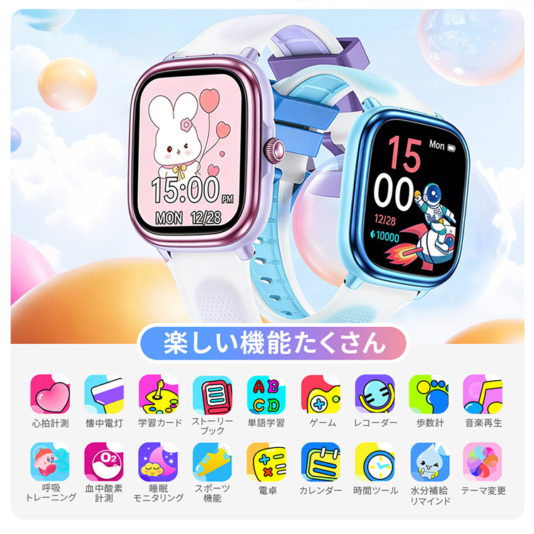 腕時計 キッズ用 スマートウォッチ スマホ接続不要 学び 遊び 健康管理 スマートウォッチ 玩具 ゲーム 音楽 アラーム 歩数計 入園入学祝い クリスマス 誕生日