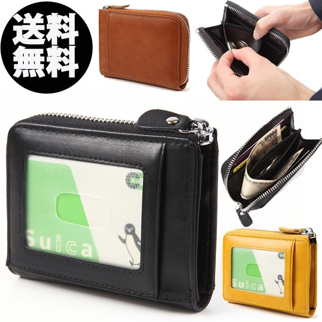 小さい財布 ミニ財布 パスケース付き 小銭入れ l字ファスナー 革 メンズ レディース 小さい 二つ折り