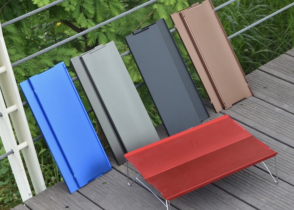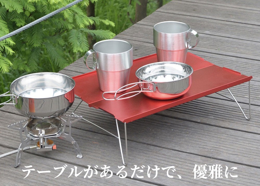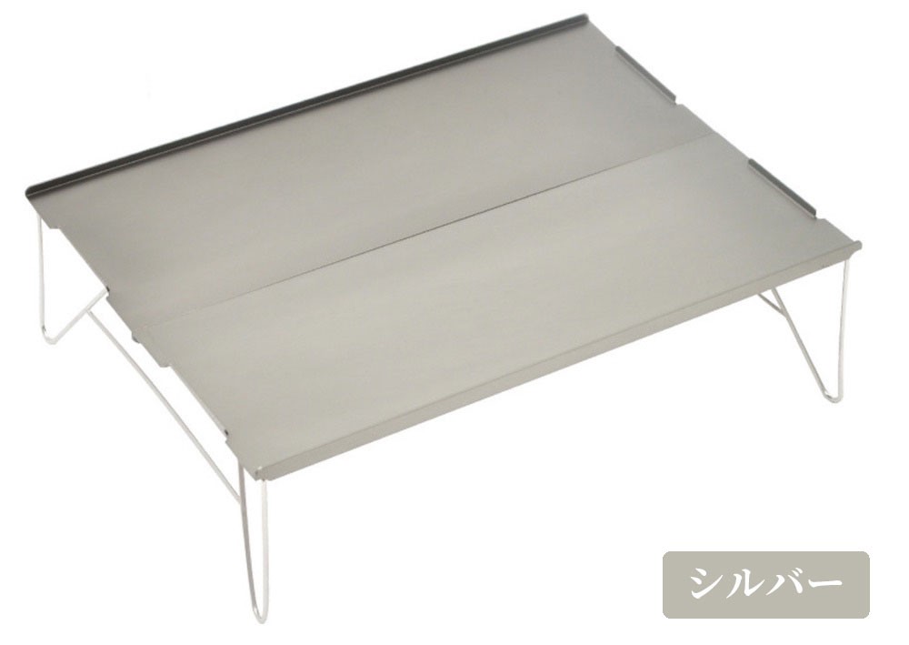 キャンプや登山の山めしに最適なコンパクトで折り畳みるミニテーブル!高級感あるアルミ仕上げで食事も豪華に!