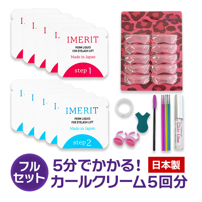 〔IMERIT〕 日本製 プレミアム エクステつけまつ毛用 パーマキット[3Dロット5サイズ] 低刺激日本製パーマクリーム液5回分