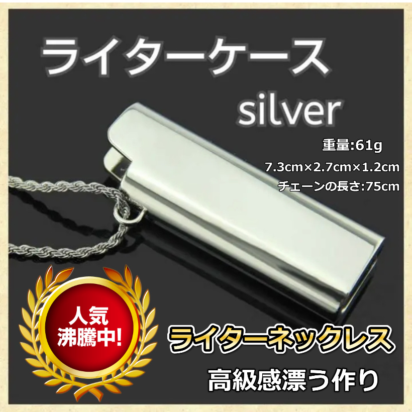 ライターケース約7.3cm×約2.6cm ライターケース内側:約2.4cm×約1.1cm ネックレス:約70cm 素材:合金