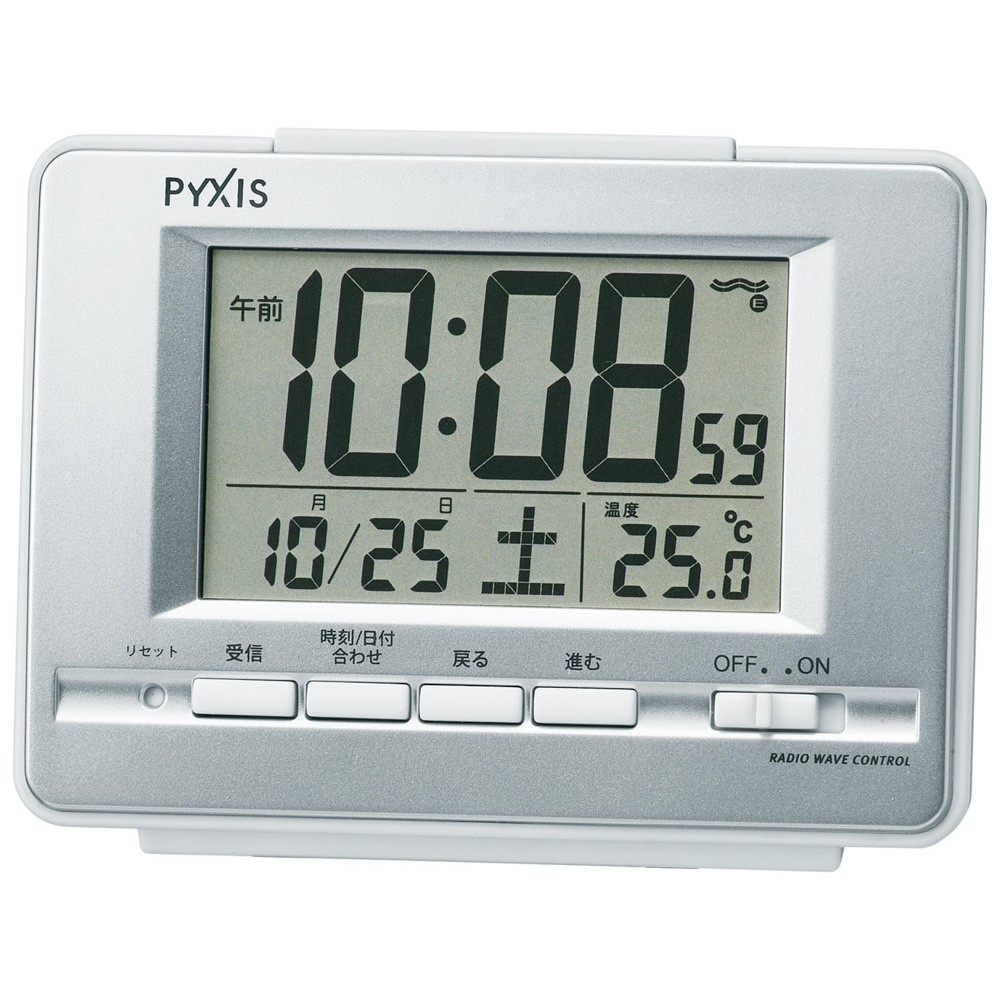 | 機能 | ・電波修正機能(40kHz/60kHz自動選局・受信OFF機能つき) ・電子音アラーム ・アラームオートストップ機能(約5分間) ・スヌーズつき ・ライトつき ・フルオートカレンダー機能 ・温度表示 |