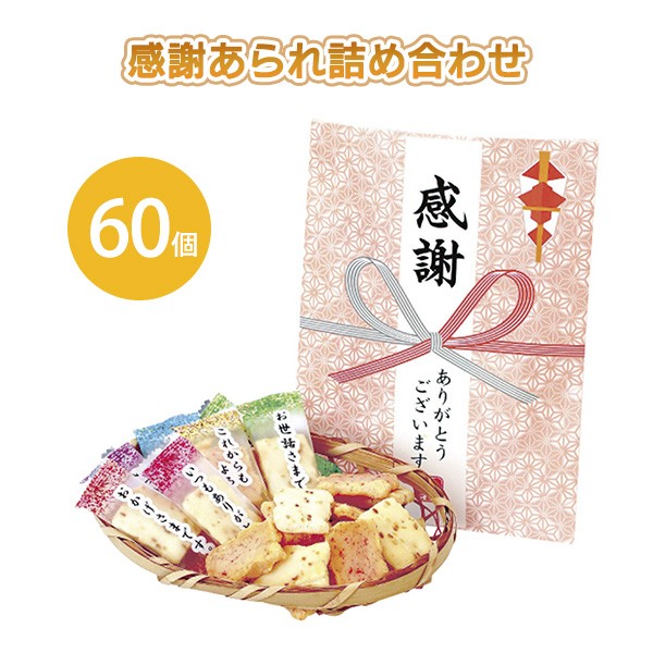 あられ 「感謝あられ詰め合わせ 60個」個包装 おかき お菓子 ご挨拶 感謝 御礼 ノベルティ 企業 販促 プレゼント 景品 特典 大量