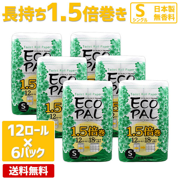 トイレットペーパー シングル 業務用 まとめ買い 長持ち 大量 「エコパル 12ロール 6パック」