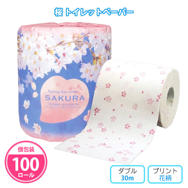 トイレットペーパー 個包装 春「桜 100個」販促品 さくら 景品 柄 ダブル 粗品 かわいい イベント