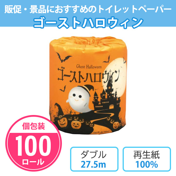 ハロウィン 粗品 景品 トイレットペーパー 業務用 販促「ゴーストハロウィン 100個」